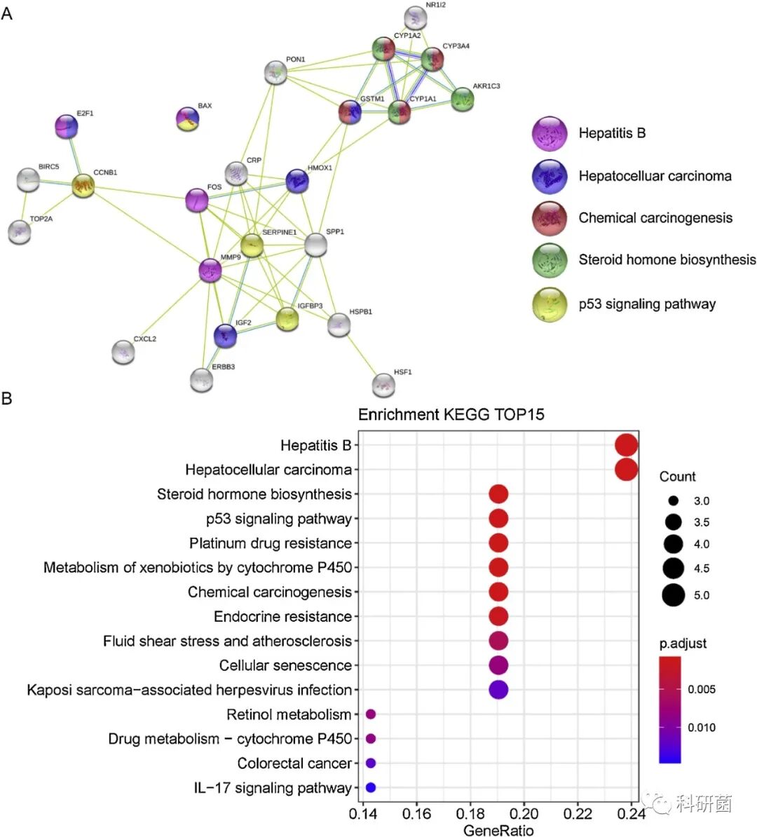 图3. 核心24个靶标与KEGG富集的蛋白相互作用