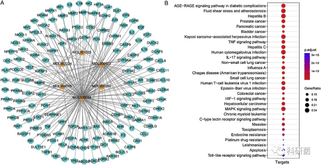 从靶向化合物参与的生物学过程可知(图B),这些靶标的生物学过程包括乙型肝炎,前列腺癌,胰腺癌,丙型肝炎,肝细胞癌等。