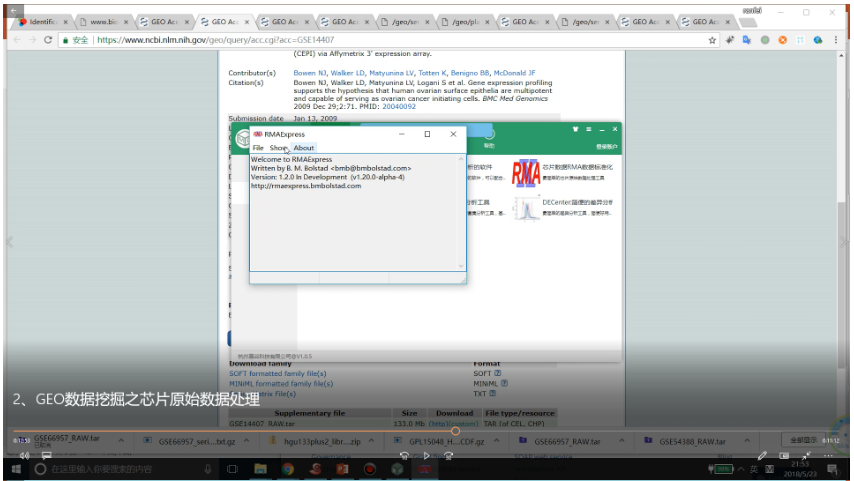 GEO数据库详细解读,包括检索数据、数据浏览、同平台不同数据集的原始数据合并,以及工具盒中RMA软件使用说明,截图为例: