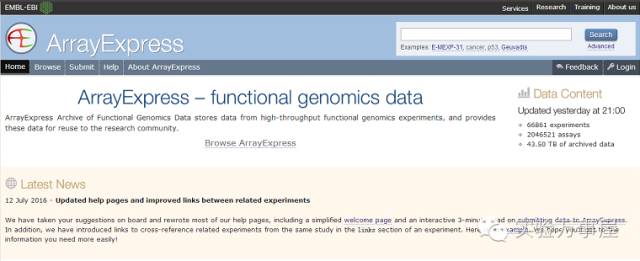 莫愁:那就上Array Express上去咯,我很大方地把网址也交给你吧,就是这个网址,打开后是这个样子: