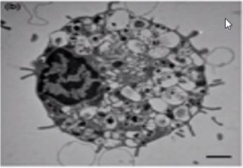 ② 中期:双层或多层的液泡状结构即自噬体结构,内含胞浆成分,如线粒体、内质网等