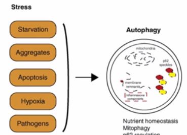 其影响因素包括:饥饿、蛋白聚集、凋亡、缺氧、病原体感染等,均会造成细胞自噬产生。正常情况下,细胞自噬发生的概率很低,只有受到以上因素的影响时,自噬才会被激活,参与机体稳态调控。
