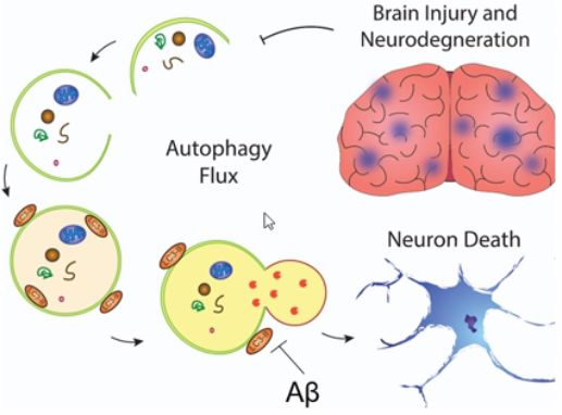 Yan Yin等人研究发现,在神经退行性疾病例如阿尔茨海默病中,β-淀粉样蛋白在脑部的沉积可以抑制自噬体和溶酶体的融合,从而抑制自噬,导致神经细胞的死亡。