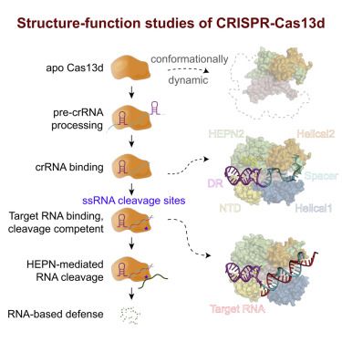 Cheng Zhang, Silvana Konermann, Nicholas J. Brideau et al. Structural Basis for the RNA-Guided Ribonuclease Activity of CRISPR-Cas13d. Cell, 20 Sep 2018, 175(1):212-223, doi:10.1016/j.cell.2018.09.001.