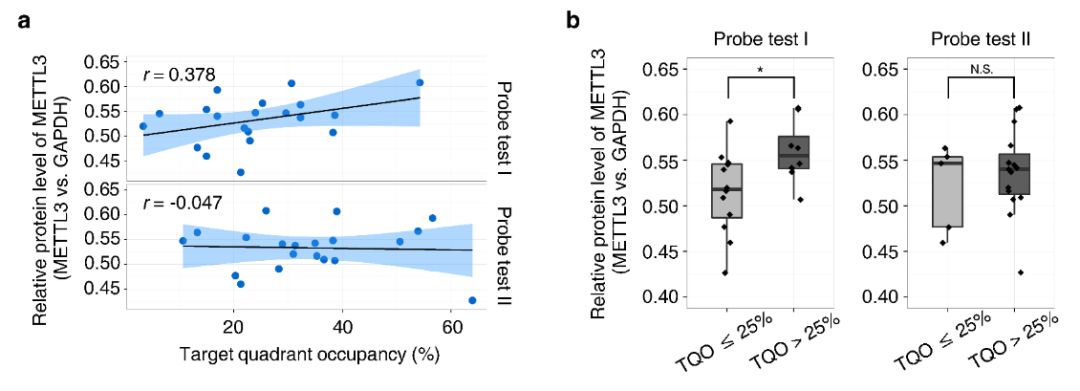 进一步地,研究发现野生型小鼠的水迷宫学习能力与其海马体的本底METTL3蛋白丰度呈现中度正相关的关系,能在短期内完成水迷宫测试 (Morris水迷宫实验是一种强迫实验动物(大鼠、小鼠)游泳,学习寻找隐藏在水中平台的一种实验,主要用于测试实验动物对空间位置感和方向感(空间定位)的学习记忆能力)的小鼠的海马体内METTL3蛋白丰度要显著高于不能完成测试的小鼠,提示m6A修饰丰度的差异可能是造成个体学习能力差异的原因之一。值得关注的是,上述差异在长期训练后的行为学表现分组中并不存在,说明记忆能力的差异可以被多次学习巩固所弥补。由此可见,“勤能补拙”具有生物机制方面的合理性。