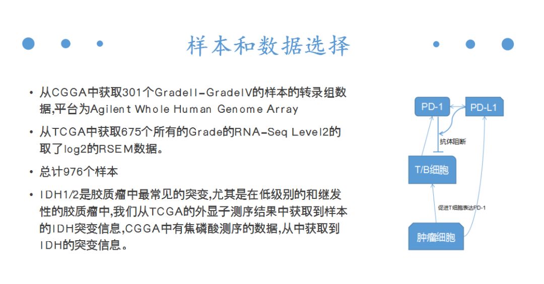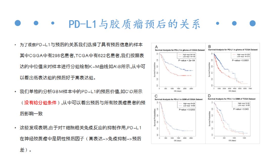 为了综合的研究PD1表达和临床特征,我们使用了TCGA和CGGA的RNA-Seq数据和临床数据,本次研究是首次综合的分析胶质瘤的PD-L1表达的分子和临床特征。