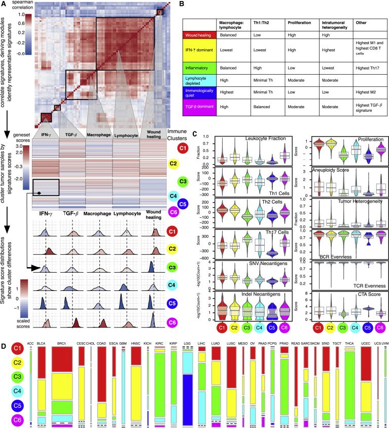 Six identified immune subtypes span cancer tissue types and molecular subtypes