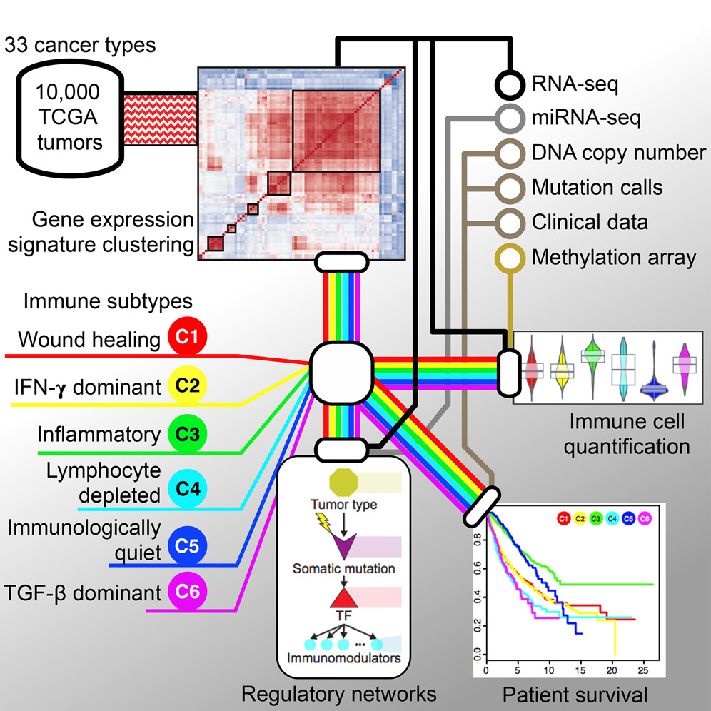 本文整合多种免疫基因组学方法来探究TCGA的33种癌症TME