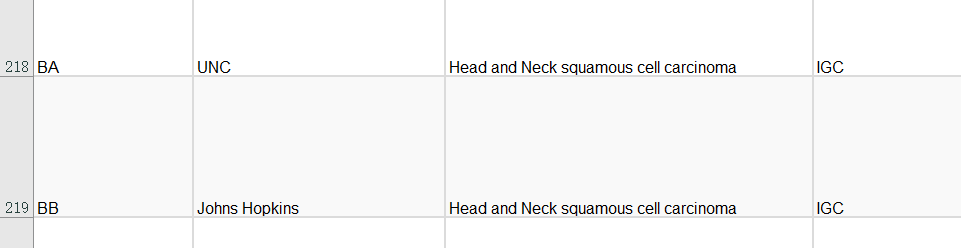 大神,本人刚刚接触生信,想咨询一个问题,tcga如何下载某一特定类型的肿瘤数据,我想下载一下口腔癌或者舌癌的数据,但是里面搜到的数据是头颈鳞癌,打开clinical数据不知如何筛选,查到的数据BA,BB不知道具体在是哪边的肿瘤,谢谢