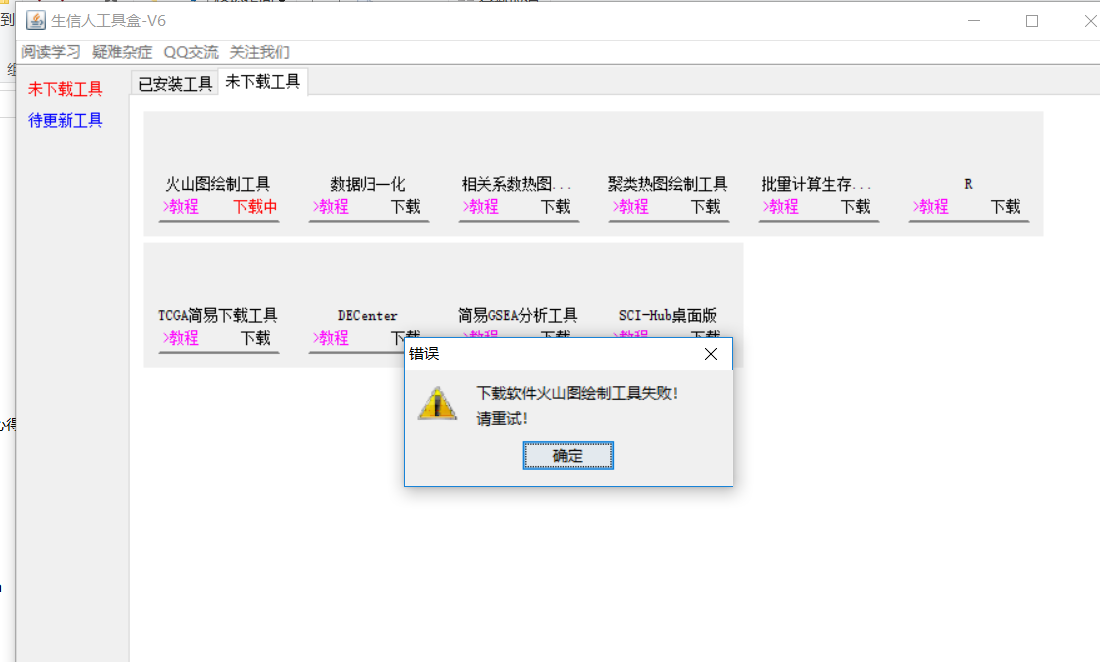 我想下载火山图工具,页面一直这样,请问各位老师怎么解决呢?